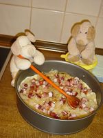 Zwiebelkuchen einmal anders - rund und mit Ei-Sahne.